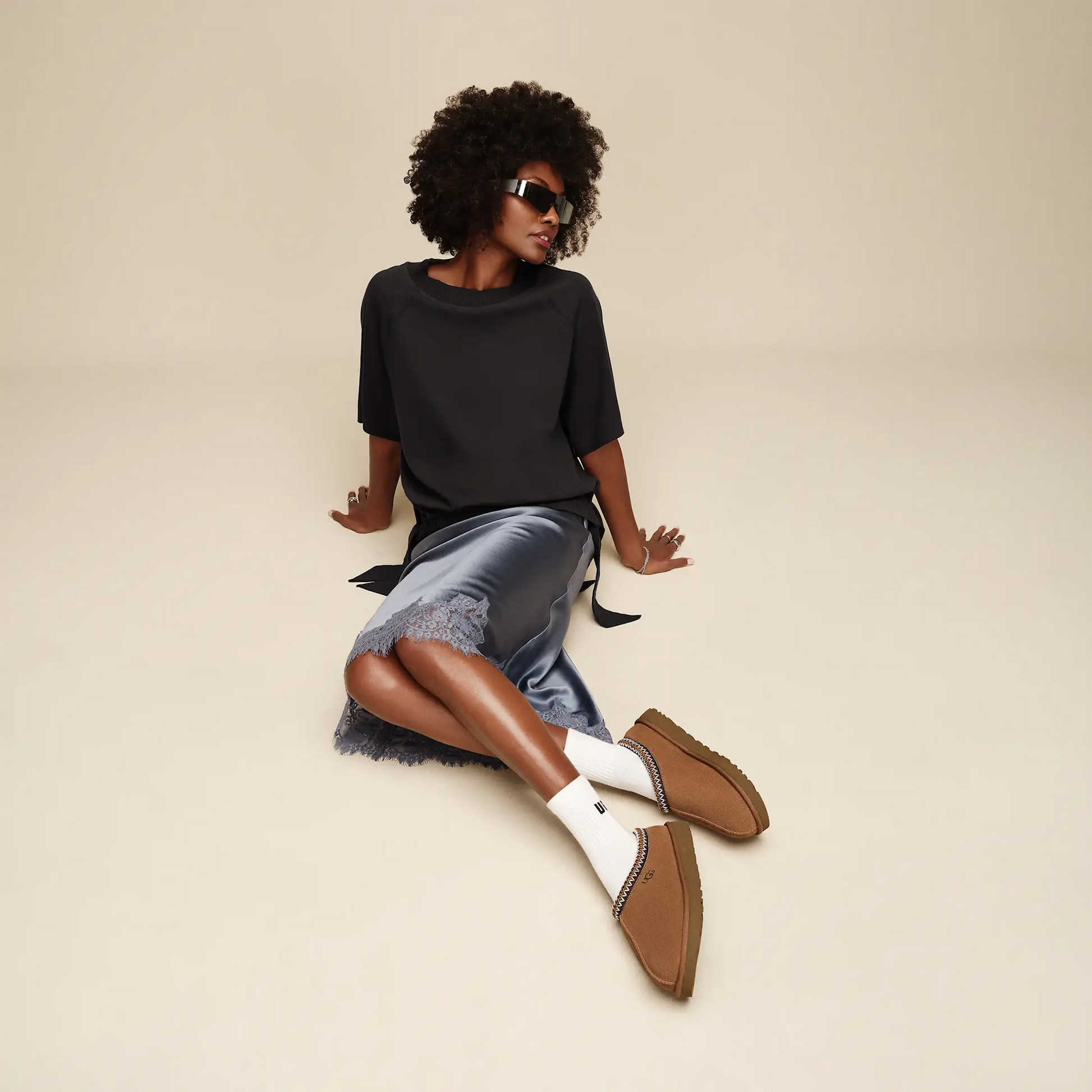 The iconic Tasman has a new addition: introducing the Tasman II. Built with the same slide-in low profile as the original Tasman, this evolution features our signature Uggbraid on the collar, a lush sheepskin interior, and soft sugarcane EVA for optimal comfort. Perfect for indoors or out, the Tasman is the ultimate go-to for all-day style and comfort.